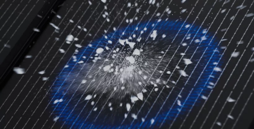 Odporność na gradobicie – Dach SOLROOF skutecznie chroni Twój dom przed gradem! W specjalistycznym teście moduły zostały poddane uderzeniom lodowych kulek o średnicy do 25 mm, wystrzeliwanych z prędkością 23 m/s (83 km/h).